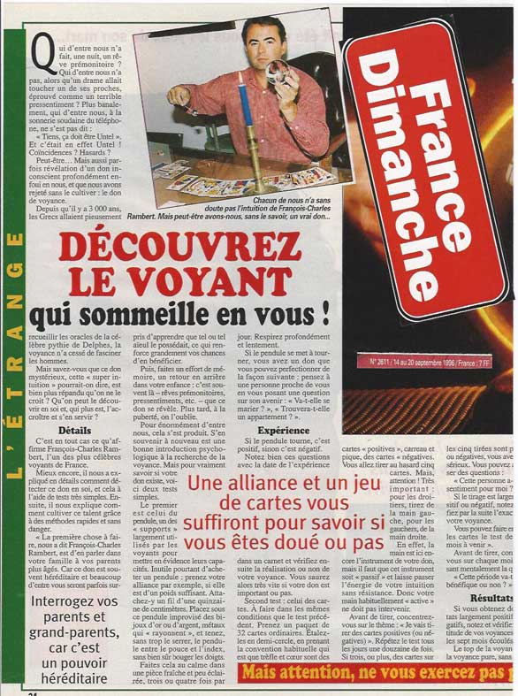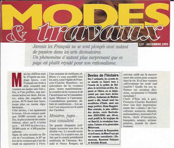 Le 12 septembre 1984, France-Soir a fait un reportage sur l'univers de la voyance.