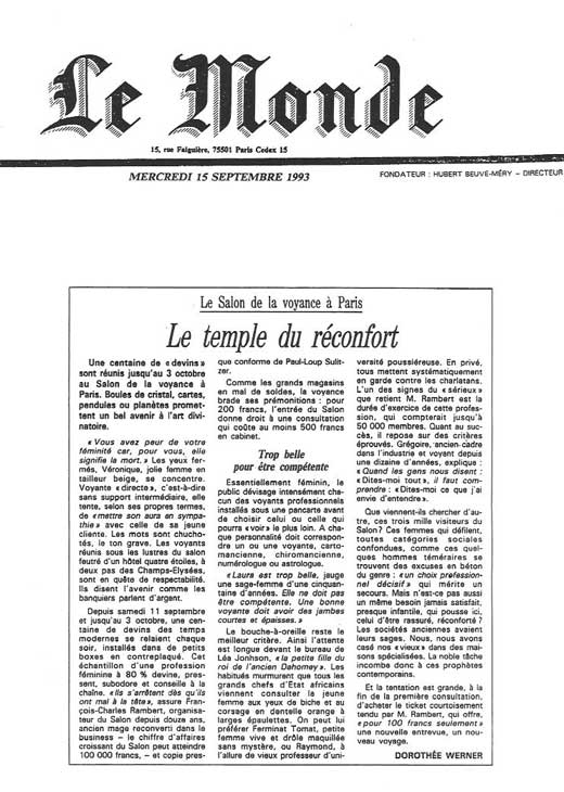 En 1993, le Monde a fait un reportage sur le salon de la voyance